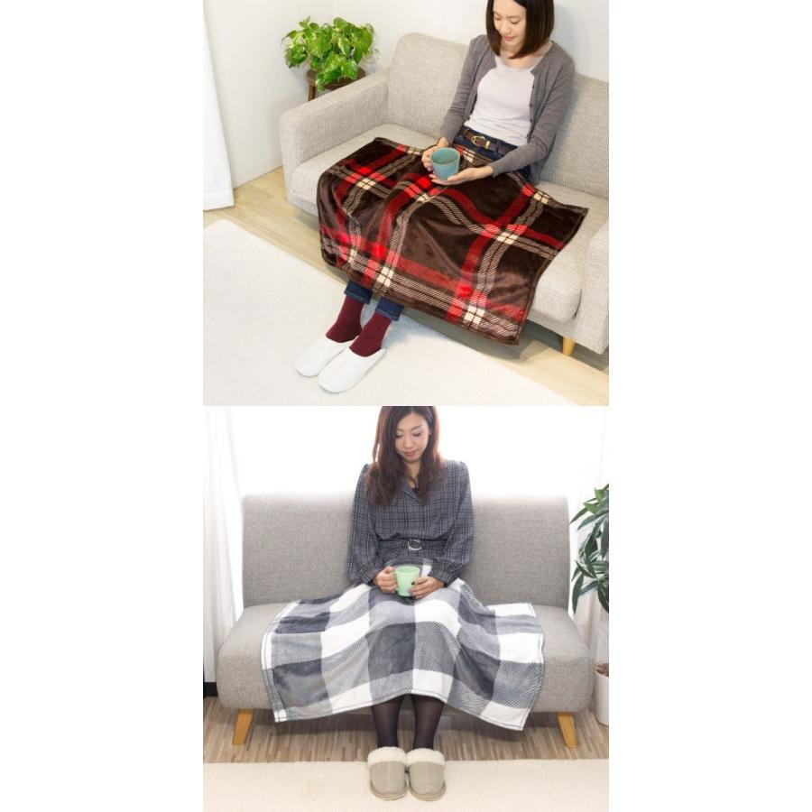 送料無料 電気毛布 電気ひざ掛け毛布 ふっくら柔らかい暖かさ ひざかけ 国際ブランド ブランケット 膝掛け 洗える グレー 灰色チェック柄 ダニ退治